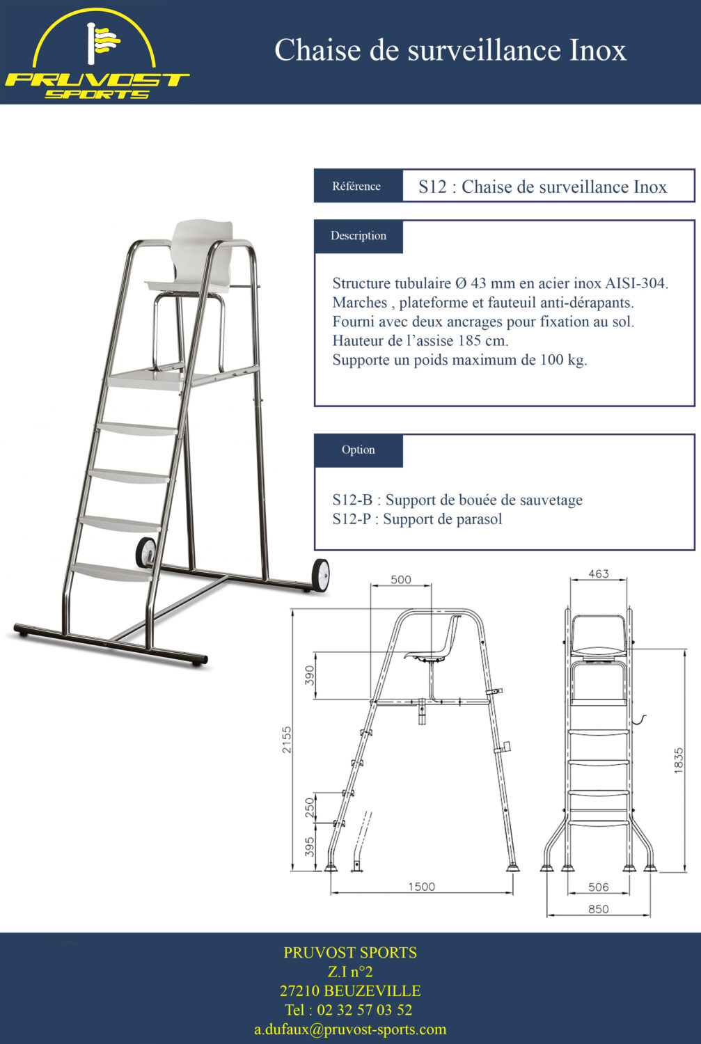 Hauteur de l’assise 1,85 m. Supporte un poids maximum de 100 kg.